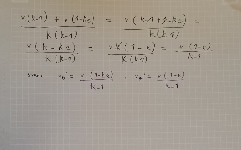 Facit fick samma svar som mig men de fick plustecken för vA' och täljaren i vB' är det också plustecken. Vad har jag missat i min lösning?