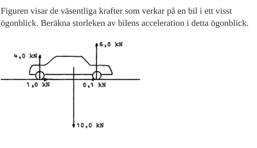 Pilen nedåt som säger "10 kN" är väl bilens tyngd Fg = mg? då kan man ju bara lösa ut m och få .