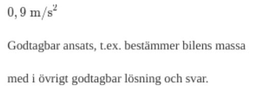 Sen tänkte jag använda formeln F= m*a för att beräkna accelerationen, men vad gör man när man inte vet massan?