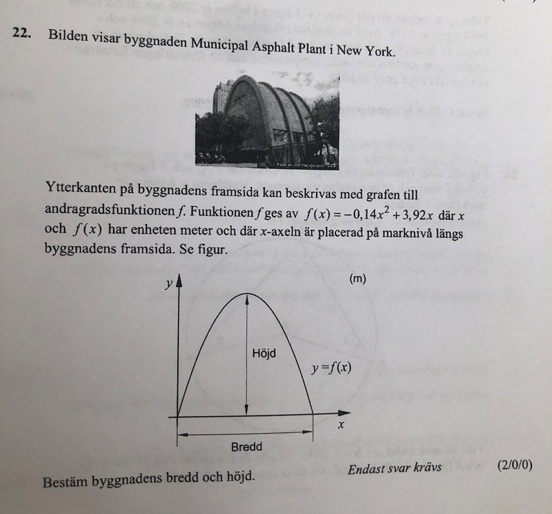 och vilket värde har f(x) dvs y när kurvan skär x-axeln?