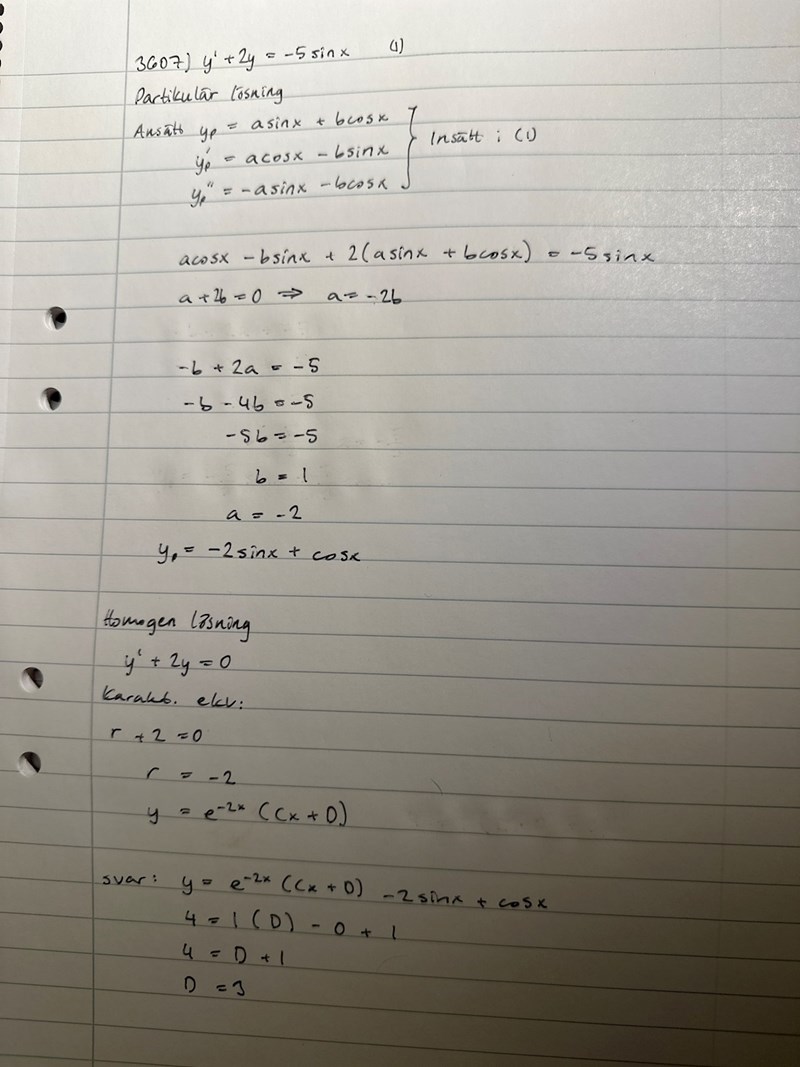 • Motsvarande karakteristiska ekvation är r+2 = 0.