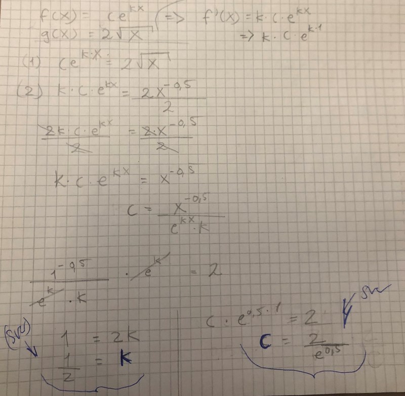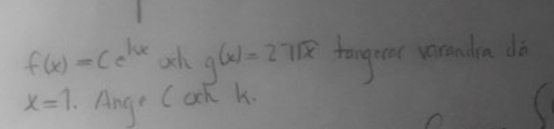 Som du skrev i en annan tråd, om de två graferna tangerar varandra då x=1 så måste det gälla att