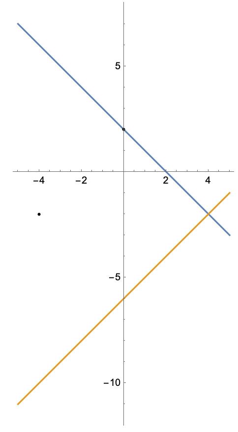 y=-x+2 är orimligt då A ej ligger på den linjen, -(-4)+2 = 6 ≠ -2