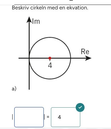 Detta läste jag i facit men förstår fortfarande inte lösningen. Enligt facit är z-4= 4 lösningen till a). Betyder det att avståndet är 4 från cirkelns mittpunkt till vilken punkt som helst på cirkelns rand?