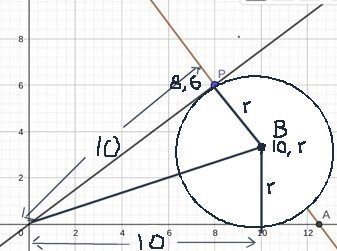 Till att börja med ger Pythagoras sats att längden av OP är 10 le.