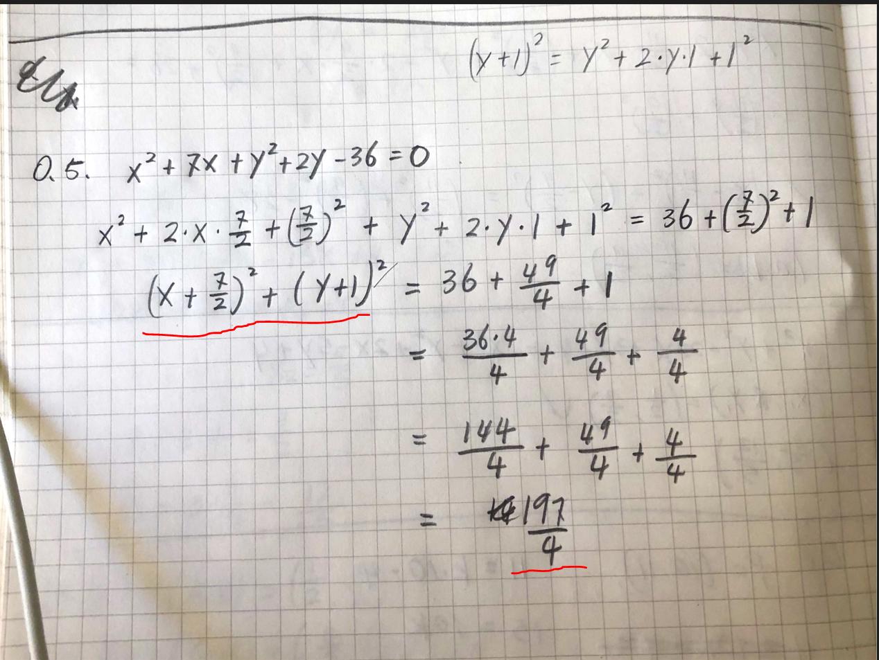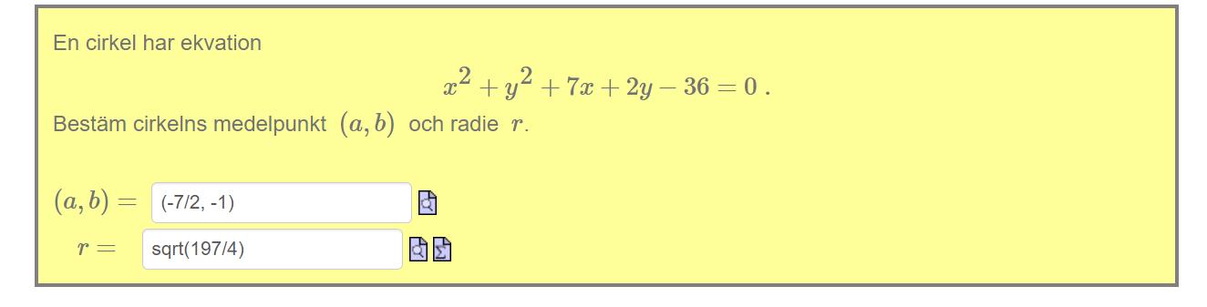 Bestäm cirkelns medelpunkt och radie med given ekv.
