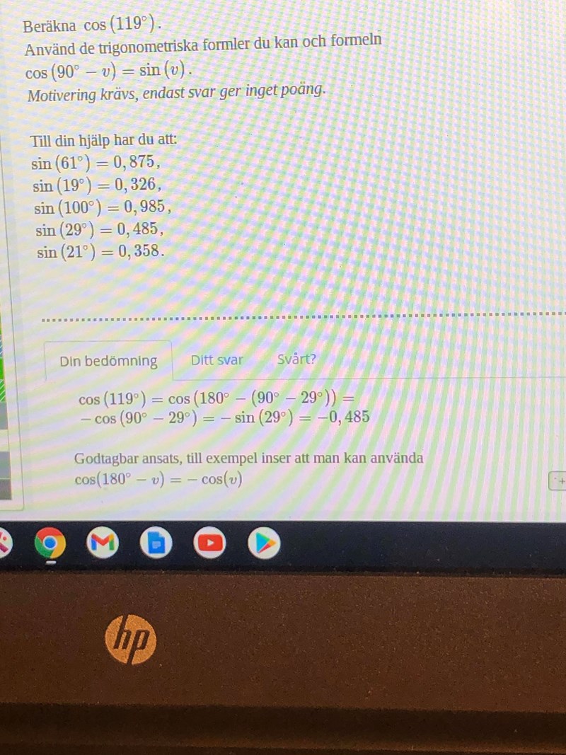 Bestäm cos (119grader)