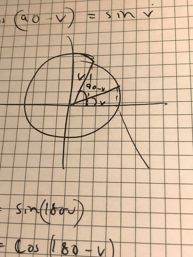Ngt jag lade märke till var att sin v (sitt y-värde) är lika stort som cos 90-v (x-värde), det beror på symmetrin.