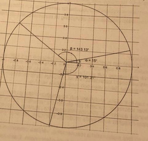 Nej meningen är att du ska läsa av ungefärliga värden med hjälp av enhetscirkeln och de vinklar som är inritade.