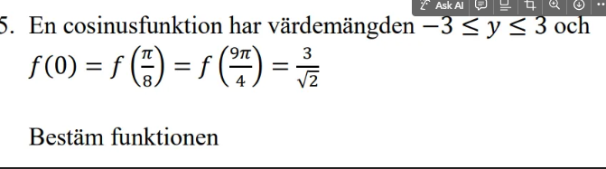 - Amplituden (d.v.s. ) och förskjutningen i -ledet (d.v.s. ) kan bestämmas m.h.a. den givna värdemängden.