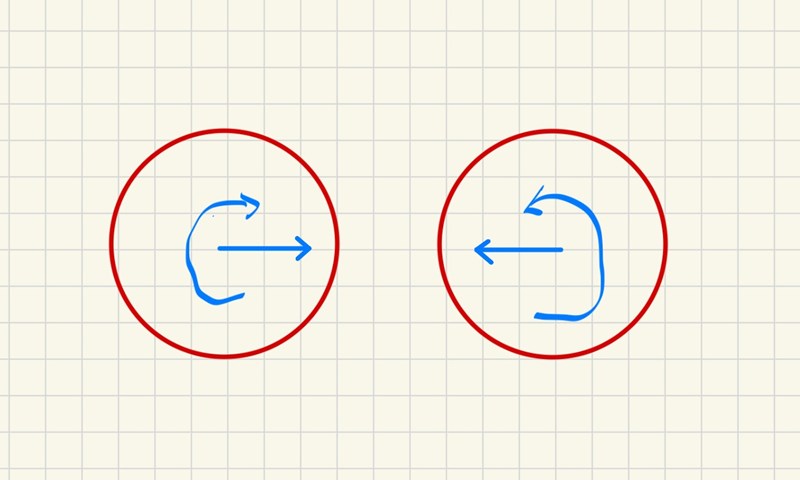 Tänk efter vad som händer när mekanismen släpps. A kommer att åka ner och B kommer att röra sig åt höger.