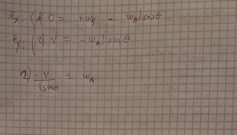 Den första ekvationen ger att wA = rwB/(lcos(theta)).