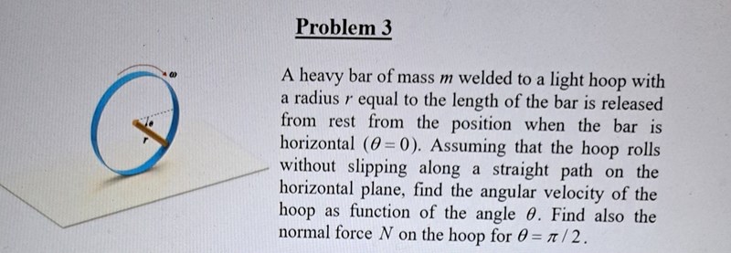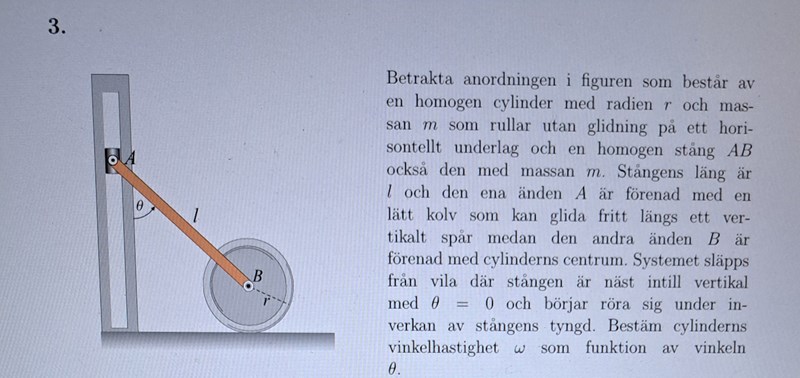 Stångens vinkelhastighet är θ˙. Vinkelhastigheten för cylindern är ω. De är inte oberoende, utan uppfyller (4).