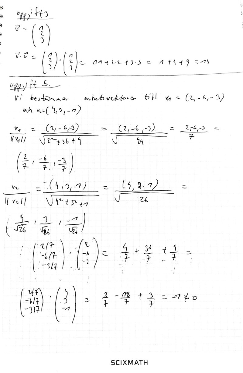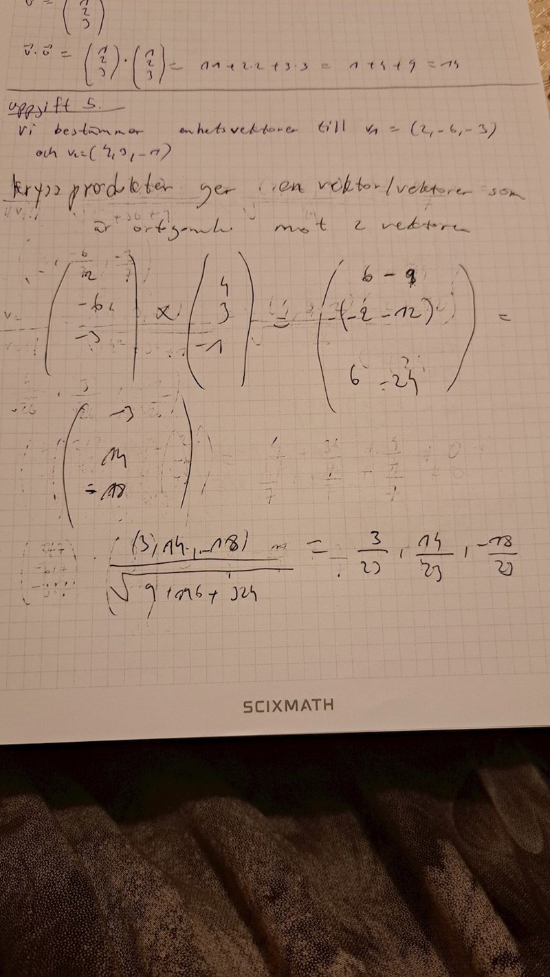 Jag bestämde två enskilda enhetsvektorer till vektorerna givna i uppgiften. Dock märker jag att enhetsvektor för första vektor är ej orotogonal mot den första vektor och ej heller den andra vektor. Men facit får fram att plus och minus enhetsvektor till första vektor är den som är orotogonal mot båda vektorerna. Har jag missuppfattat frågan?