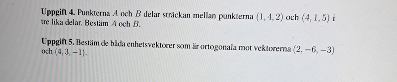 Bestäm de båda enhetsvektorer som är ortogonala mot båda vektorerna