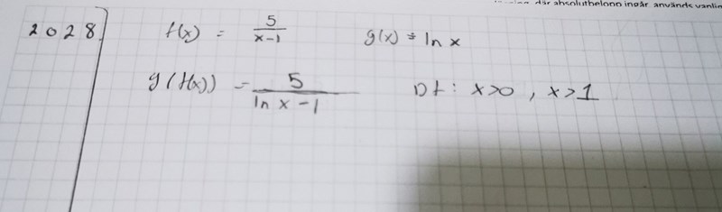 Jag får definitionsmängden till x>0 på grund av ln. Och x>1 för att nämnaren inte ska bli 0. Men facit säger - 1<x<0 och x>1. Jag förstår inte varför det blir -1<x<0.