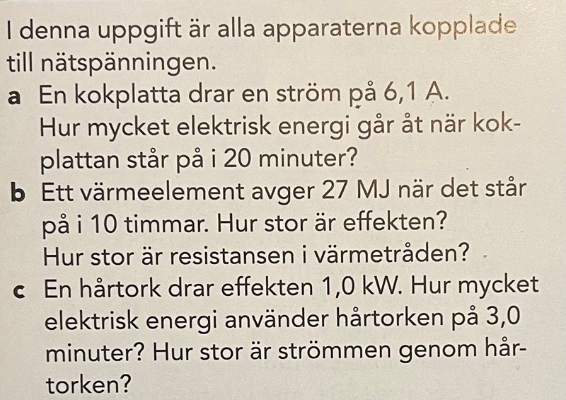 Bestäm den elektriska energin som går åt