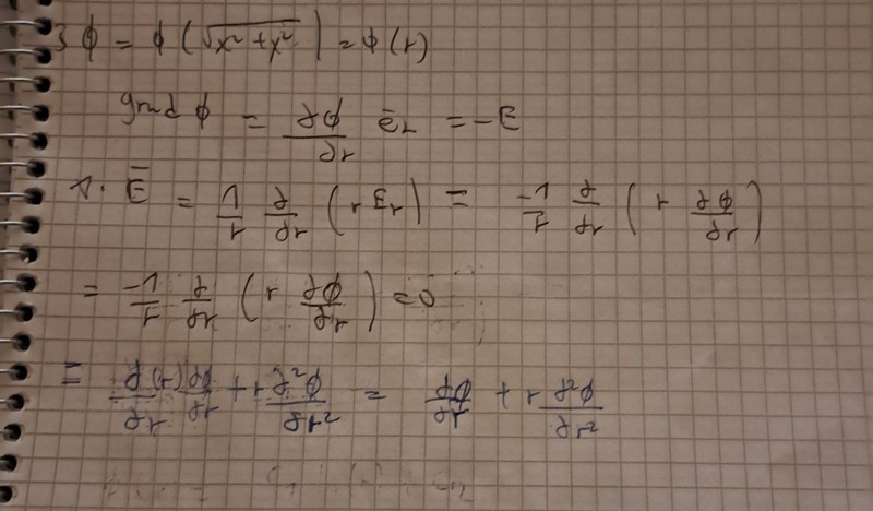 Då får man ju dphi/d(r)=a/r och sen  phi(r)=aln(r)+C2