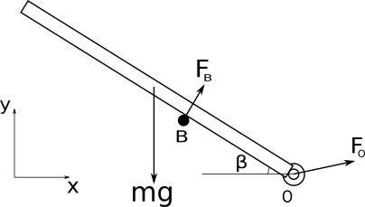 Men eftersom stångens vinkelhastighet i detta fall är noll (stången roterar inte) så är L(O) = 0. Momentekvationen blir därför