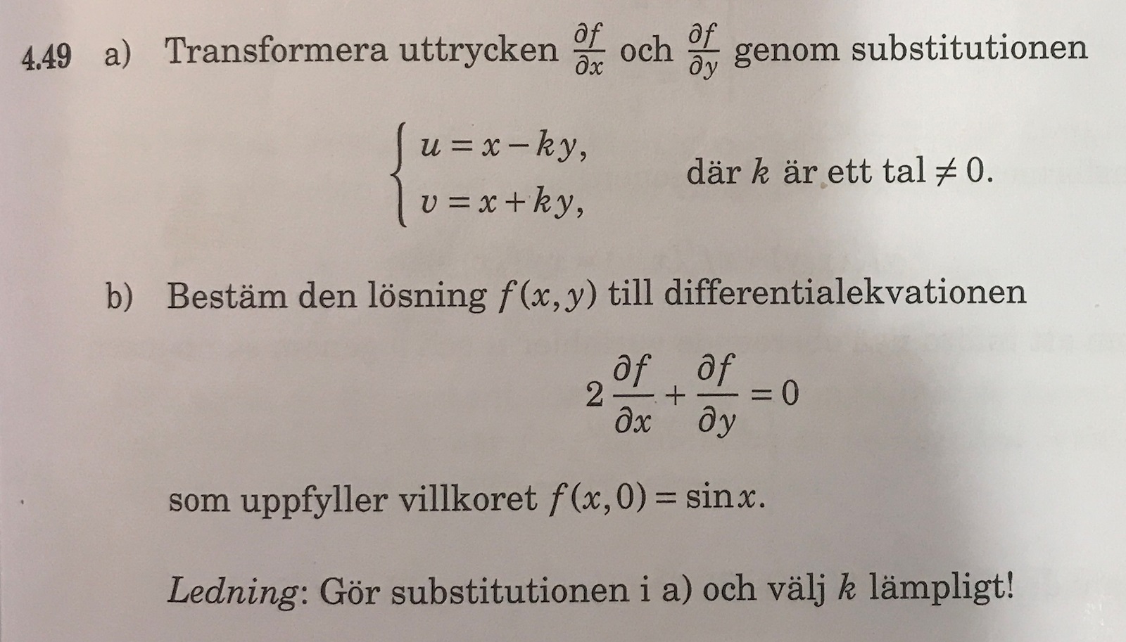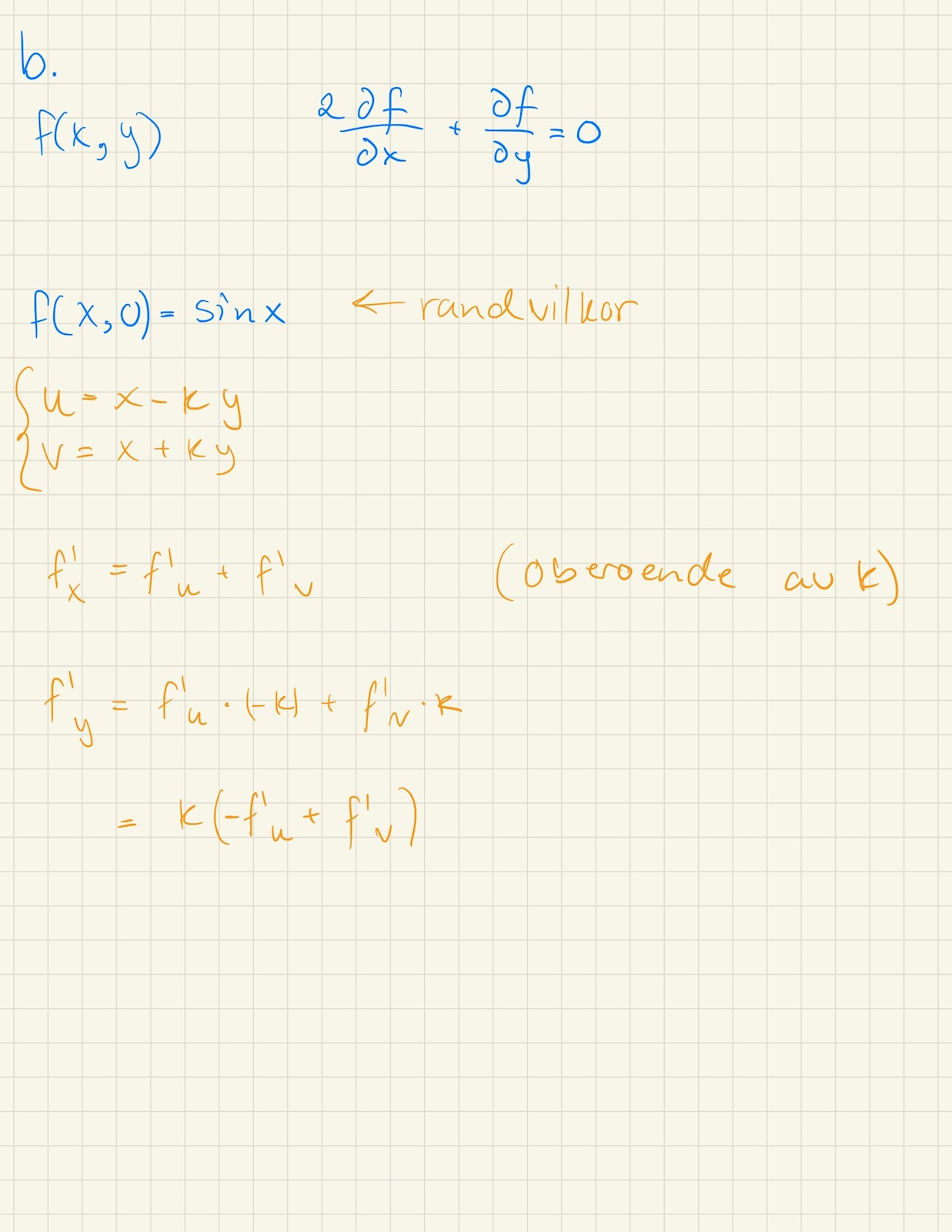 Bestäm den lösning f(x,y) till differentialekvationen (J.Månsson 4.49b)