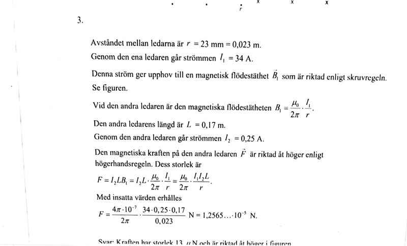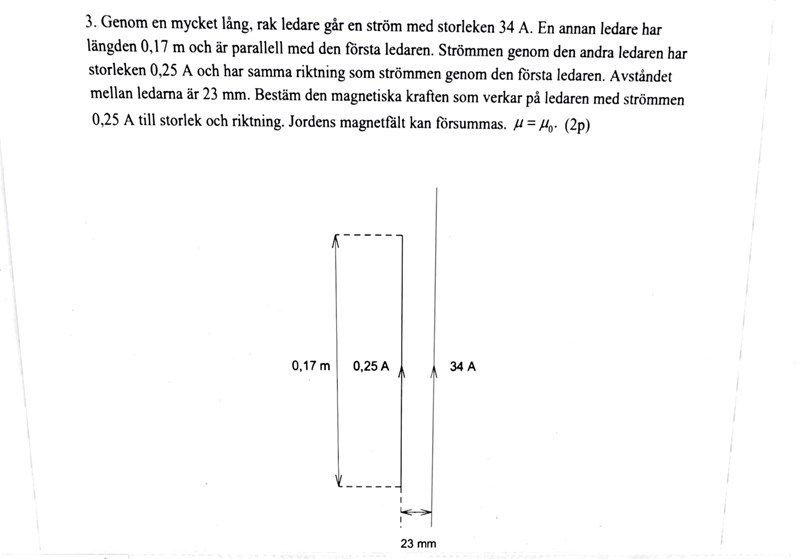 Ah ok då är jag med på att en tredje ledare inte finns. Ja det var ej lätt att tolka rätt utifrån en text bara. Bilden de hade med i uppgiften gjorde nu saken lättare. Jag misstänkte att längden 0.17 m hade med 0.25 A att göra men var osäker!