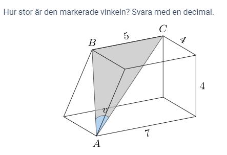 CA är rymddiagonal i ett rätblock med sidorna 7, 4 och 4.