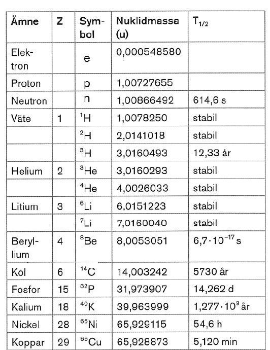 En massa på 0,01812 u motsvarar 16,9 MeV.