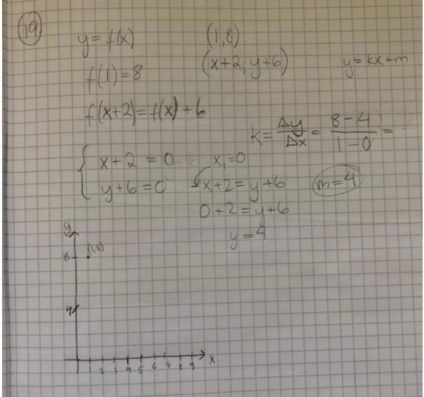 Jag har satt upp ett ekvationsystem där ekvationerna ska vara lika med 0 eftersom jag behöver ha reda på fler punkter för att kunna ta reda på k-värdet. Jag fick kvärdet till 4 men det är fel. Testade att sätta in x=0 för att få reda på mvärdet och fick då 4 men det är också fel.... Jag vet inte i vilket ände som jag ska börja lösa uppgiften i ? Visst ska jag ha ett ekvationssystem?