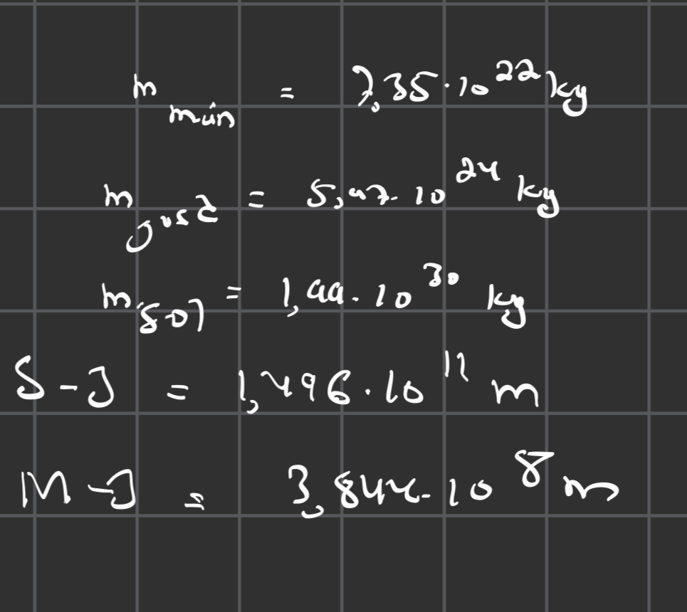 Försöker beräkna kraften mellan månen och jorden samt mellan jorden och solen med hjälp följande värden, men kommer inte fram till rätt svar: