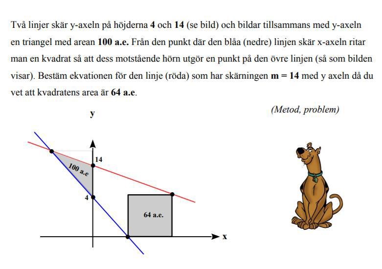 Hej, jag har problem med att fortsätta med uppgiften. Jag har ritat upp den men jag kan inte fortsätta efter det, jag har också räknat ut var på Y de båda linjerna skär i varandra.