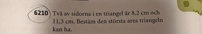 Det jag måste räkna ut är alltså vilket värde på v som ger maximal area! Jag förstår inte riktigt hur jag ska göra det.