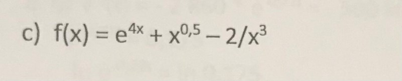 jag behöver hjälp med denna uppgiften. Saken är att jag vet hur man deriverar e^ 4x och x^0,5 , men kan inte drevers -2/x3 och förstår inte hur svaret ska bli 4e^4x + 0,5 • 1/x^0,5 + 6/x^ 4