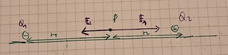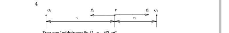 Såhär gör facit. De tar E2-E1. Men jag hade E1-E2 för jag ritade att fältet från Q2 går till vänster och fältet från Q1 går till höger. Varför stämmer ej det enligt min bild ovan?