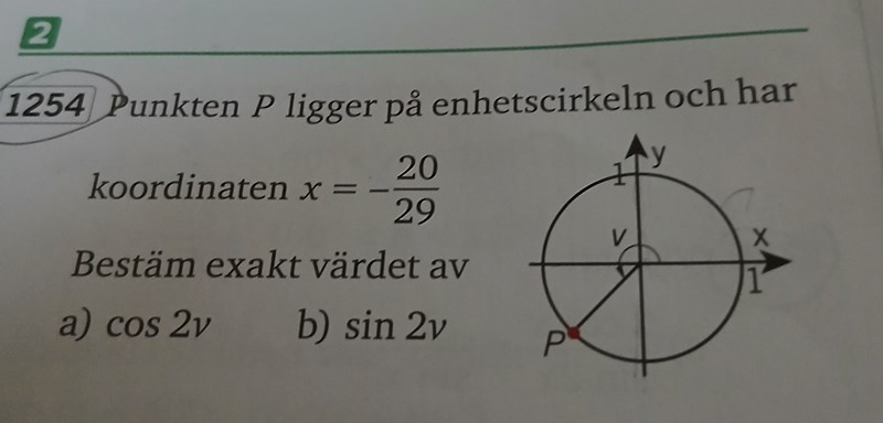 Sedan har man dubbla vinkelns formler för att ta fram sin 2v och cos 2v