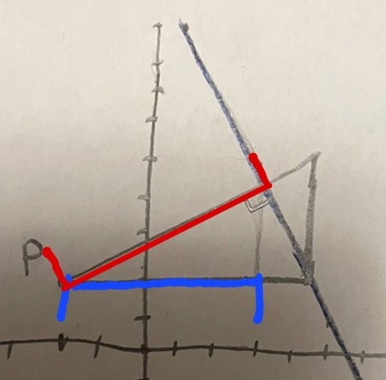 Du har korrekt ritat att hypotenusan I din triangel skär linjen i rät vinkel.