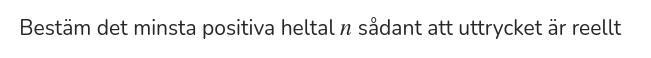 Bestäm det minsta positiva heltal n sådant att uttrycket är reellt