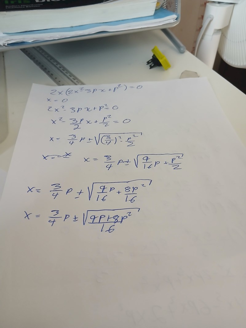 Om du gör det så kommer du att få fram ett abdragradsuttryck där den obekanta storheten är p.