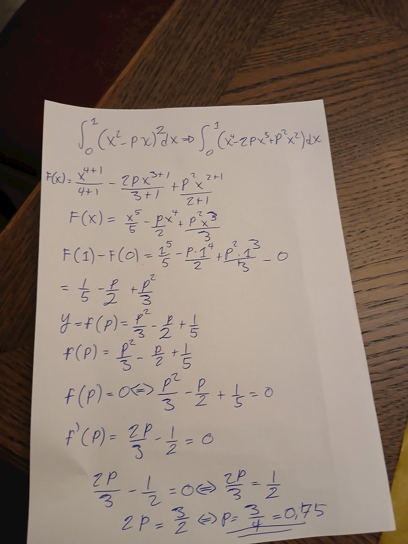Uppgiften gällar att bestämma det värde på p som minimerar detta uttryck.