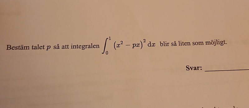 Du kan nog helt enkelt lösa integralen och minimera funktionen denna definierar (något på formen ) genom att hitta extrempunkter.