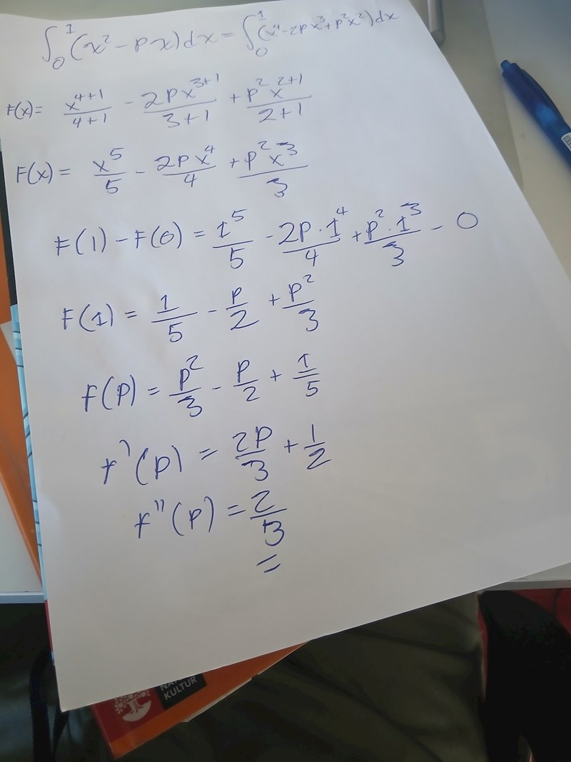 En av dessa är att hitta den stationära punkten genom att derivera med avseende på den obekanta storheten p och sedan sätta förstaderivatan lika med 0. Eftersom det är ett andragradsuttryck så "vet" du om detta ger dig minimi- eller maximipunkten.