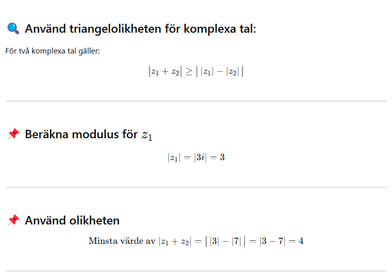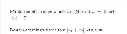 Bestäm det minsta värde ∣ z ∣ kan anta.