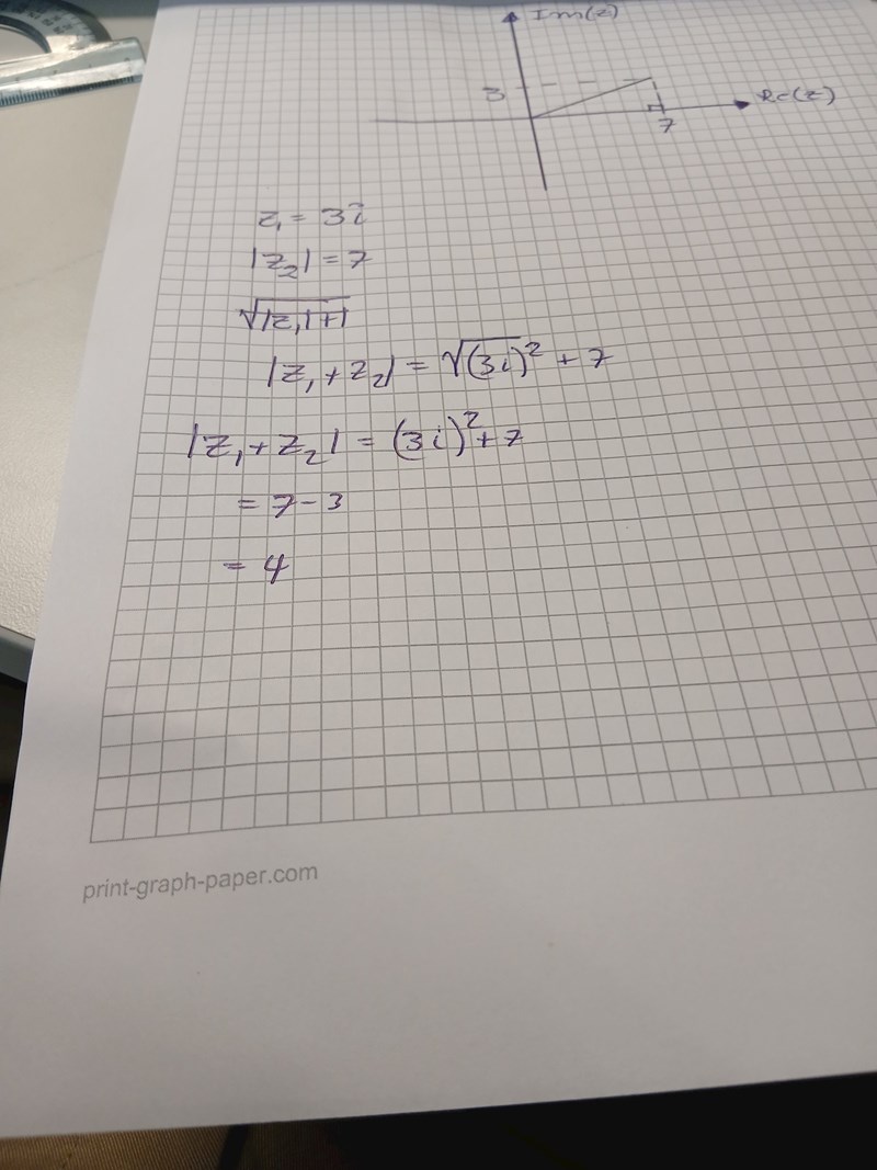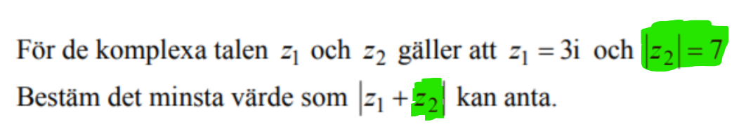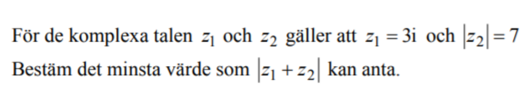 När man väl befinner sig där, skall man fundera på vad |z_2|=7 innebär geometriskt och rita denna "bild". Då får man alla tänkbara z_2 och kan besvara frågan.