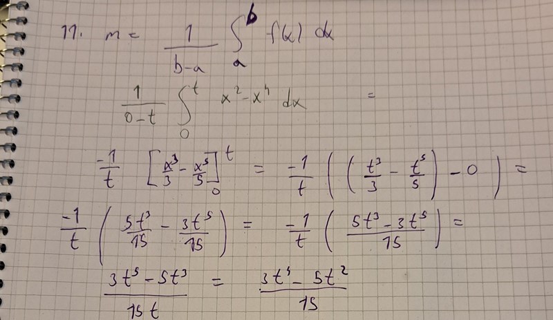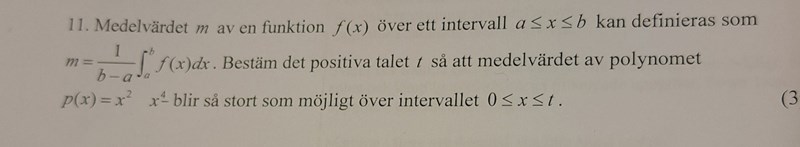 Smaragdalena skrev:Ja. Du skall ta reda på vilket värde på t som ger medelvärdet det största värdet.