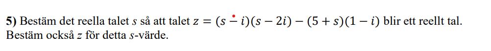 Jag vågar aldrig multiplicera ihop två parenteser OCH byta tecken i samma steg, jag vet att det alldeles för ofta blir fel då! Så -(5+s)(1-i) => -(5-5i+s-is) => -5+5i-s+is.