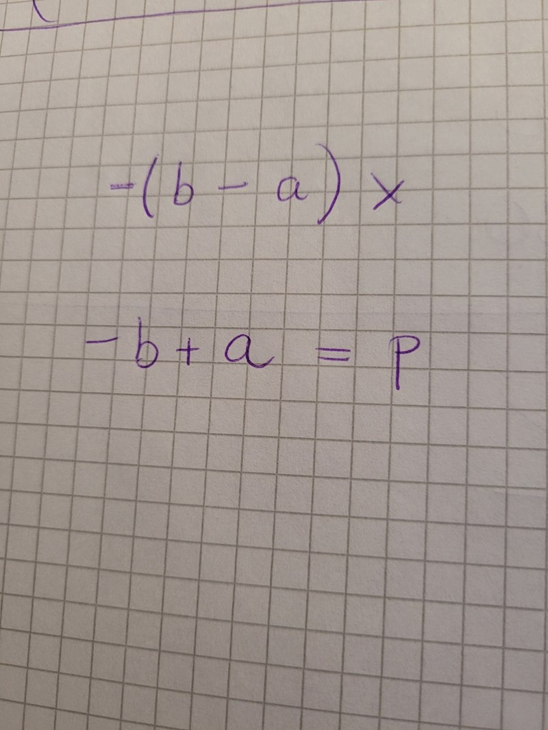 -(b-a)x är -bx + ax. Minus gånger minus blir plus.