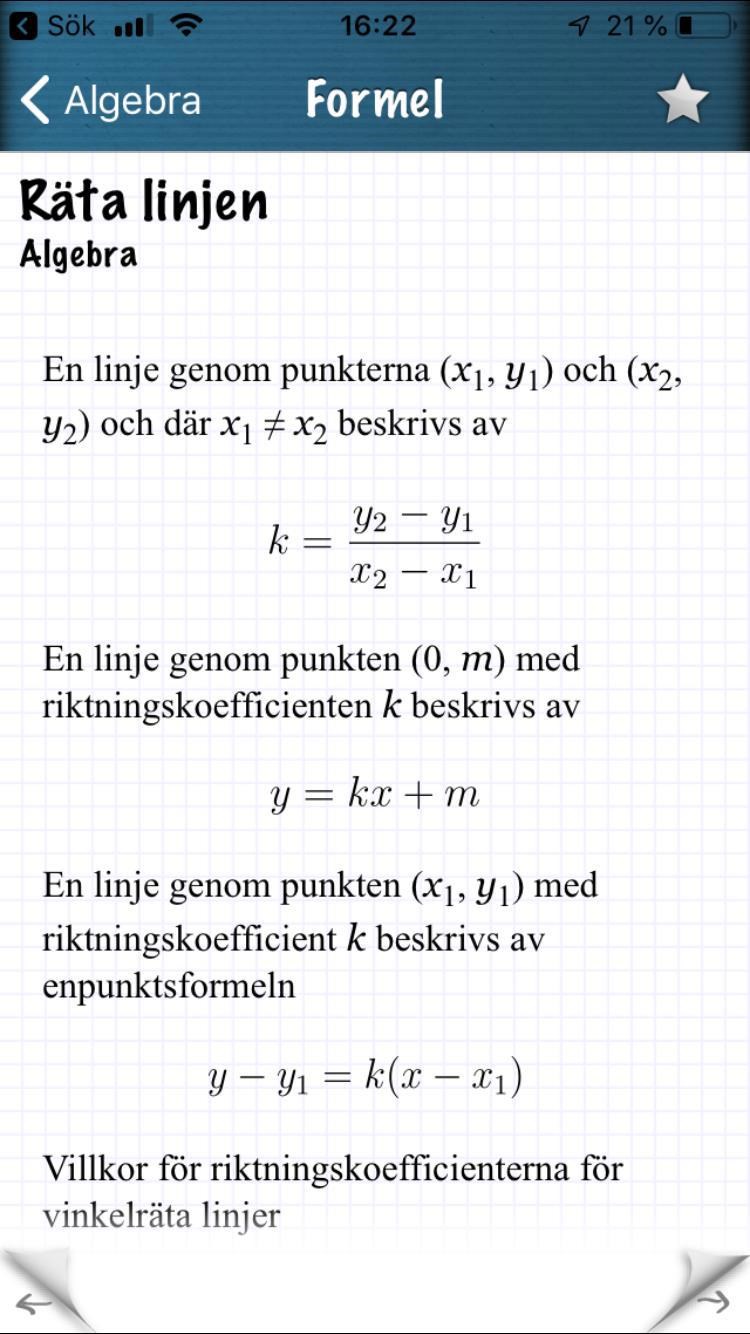 "Bestäm en ekvation för en rät linje som har k=0,5 och går igenom punkten (2,9)."