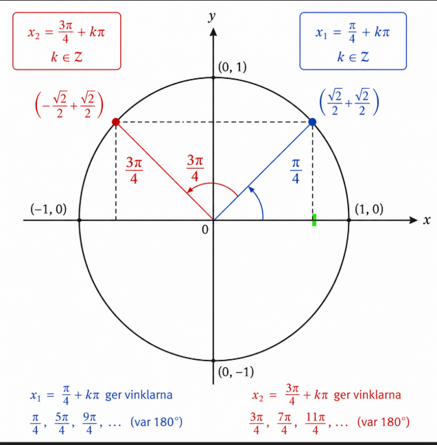 Jag skulle börja med att markera lösningarna i enhetscirkeln