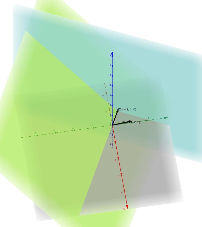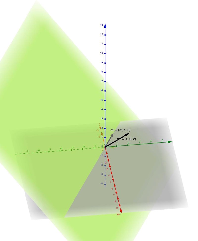 - Det andra vinkelräta planet A2 måste ha en normalvektor n2 som ligger i det första planet A1. Se även Dr. G:s första inlägg.