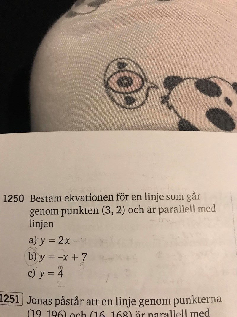 Hej jag behöver hjälp med 1250 b) och c). I uppgift c så tänker jag att y=4 betyder att k-värdet är 0.
