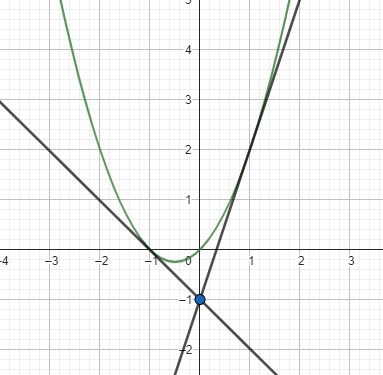 Det finns olika metoder för att hitta de två tangenterna som går genom punkten A(0,-1).